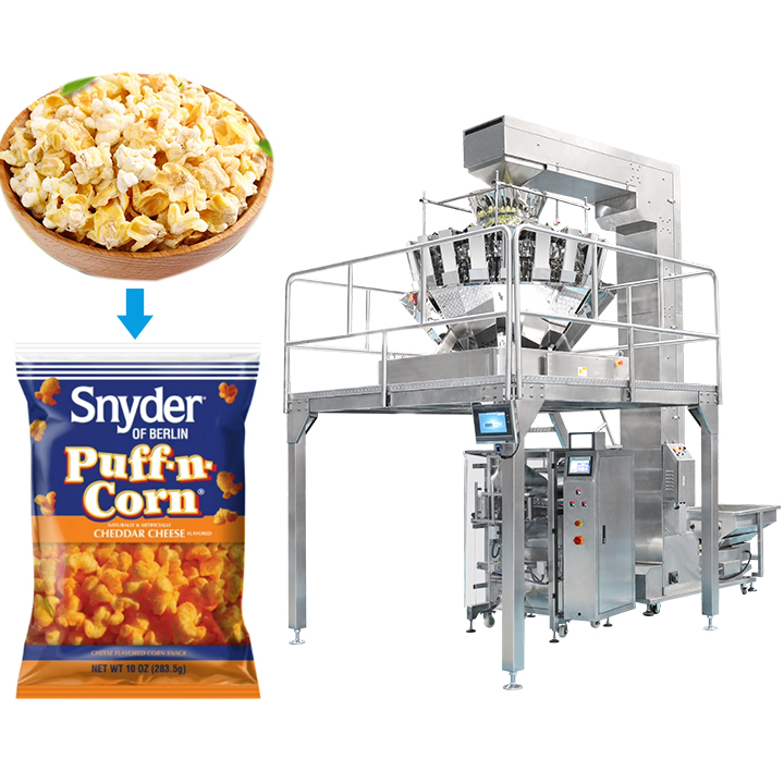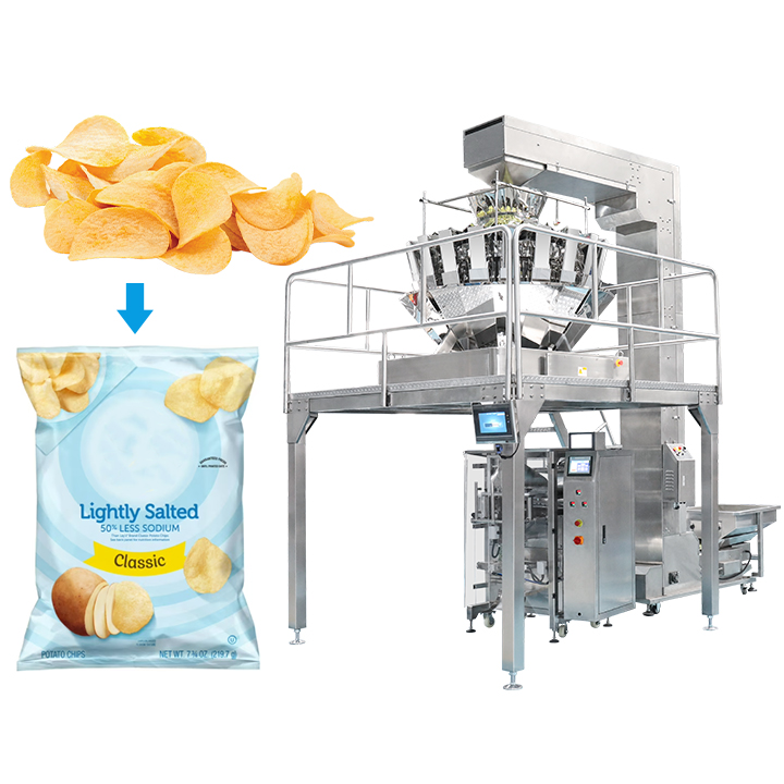 The Potato chip/French fries/Puffed food packaging machine is used in the packaging of a wide variety of snack foods, including potato chips, French fries, puffed snacks, and other related products. The machine is designed to handle granular or chip-like materials, sealing them into packaging with precision and speed. The machine offers flexibility for different food types, providing consistent and accurate bagging in a variety of shapes and sizes. It is particularly ideal for products that require an efficient and fast packaging process, such as: